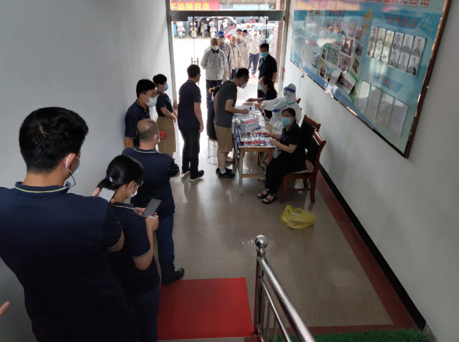 上午10:30全體員工有秩序的排隊等待檢測,公司2名行政人員負(fù)責(zé)登記、1名社區(qū)工作者在現(xiàn)場宣傳引導(dǎo),僅用半小時完成公司所有員工的核酸檢測任務(wù),為企業(yè)安心發(fā)展提供強(qiáng)力支持和貼心服務(wù)。