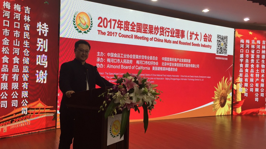 由中國食品工業(yè)協(xié)會(huì)堅(jiān)果炒貨專業(yè)委員會(huì)主辦的“2017年度全國堅(jiān)果炒貨行業(yè)理事會(huì)(擴(kuò)大)會(huì)議”,于2017年10月23日—25日在吉林梅河口市召開。出席此次會(huì)議的代表有:協(xié)會(huì)執(zhí)行會(huì)長、副會(huì)長、全體理事單位;梅河口市政府、廣西龍州縣政府、云南臨滄縣政府有關(guān)部門領(lǐng)導(dǎo)以及吉林省有關(guān)市縣的領(lǐng)導(dǎo);出席的有關(guān)部門還有國家食藥監(jiān)總局三司、吉林省食品安全質(zhì)量檢驗(yàn)檢測(cè)所,以及美國、俄羅斯、越南、巴基斯坦等國家堅(jiān)果協(xié)會(huì)、企業(yè)代表,共計(jì)500余人參加了會(huì)議。