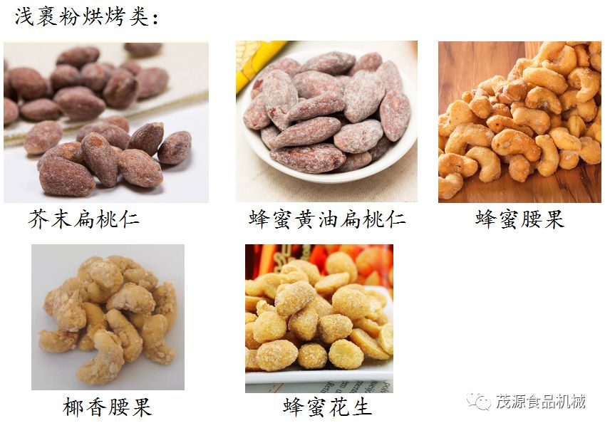 裹衣/裹粉類產(chǎn)品是近年來較為熱銷的產(chǎn)品之一。通過糖漿向物料表面沾粘面粉+糕粉+變性淀粉+其他特色配料,來改變或賦予原有堅果/籽類所不具備的形狀/風(fēng)味。
