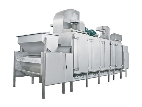 該烤爐采用循環(huán)熱風(fēng)方式進(jìn)行穿透式烘烤;烘烤過(guò)程物料厚度、行進(jìn)速度自動(dòng)可調(diào),連續(xù)進(jìn)出;烘烤溫度單元式控制,可實(shí)現(xiàn)各單元溫度獨(dú)立調(diào)整;后置獨(dú)立冷卻區(qū),無(wú)需單獨(dú)冷卻;模塊式結(jié)構(gòu),產(chǎn)量提高亦無(wú)須變更設(shè)備;熱源多元化,可使用天然氣、液化氣、導(dǎo)熱油、電等。本機(jī)以其結(jié)構(gòu)及性能的優(yōu)越特點(diǎn),為堅(jiān)果炒貨行業(yè)提供了一機(jī)多用,產(chǎn)品質(zhì)量穩(wěn)定的理想設(shè)備,主要可加工的產(chǎn)品有五香花生米、乳白花生米、磨醬米、巴旦木、腰果、蕎麥等各種顆粒類食品。