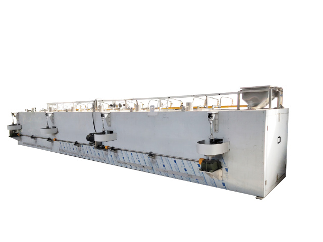 全自動平面回轉烤爐主要用于堅果炒貨及籽類產品裹衣裹粉后的烘烤加工。采用直燃式加熱方式,熱量直接作用于食品上,烘烤香味更濃郁,并通過設備的搖擺避免食品粘連變形。具有烘烤口味色澤優(yōu)良, 沒有污染等特點。